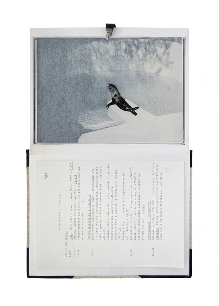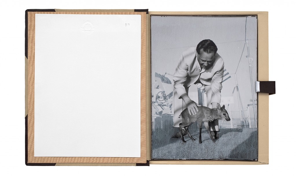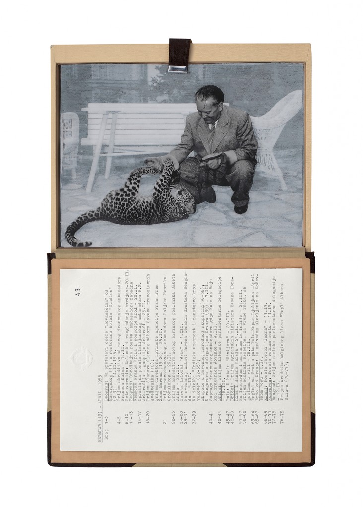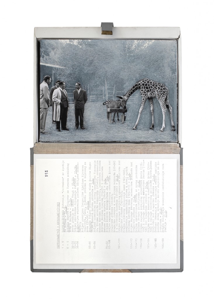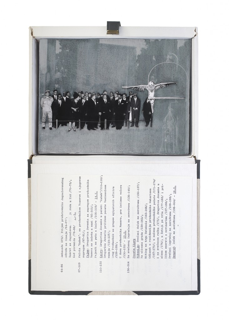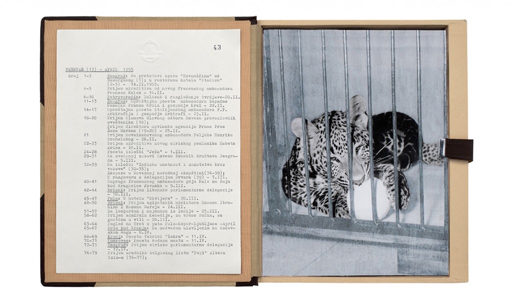 The Gift Ecology presents a series of photographs of Yugoslav government documents detailing the exchange of animals and the ritual functions these gifts performed symbolically in constructing a new transnational political space. Jasmina Cibic erases the geographical context surrounding the events, focusing the viewer’s attention instead on the animals’ portraits and the diplomatic viewership their display once served. As many of the countries—and the multilateral alignments these animals were tasked to represent—begin to fracture or dissolve, the animals’ role as gifts becomes untethered from the obligation of reciprocity. This frees the contemporary viewer to consider their transformed identities, shaped by shifting power structures and silences—perhaps destined to remain forever backstage, within the liberated ruins of colonial and ideological structures.