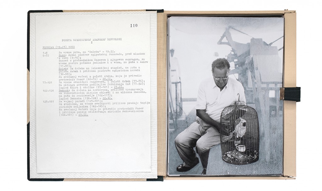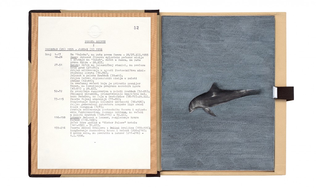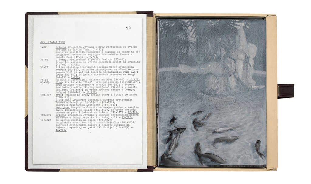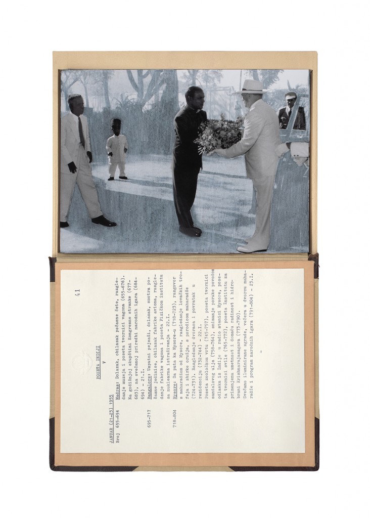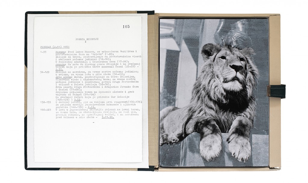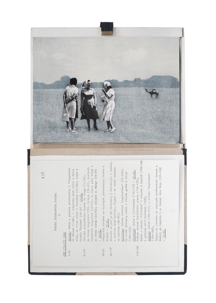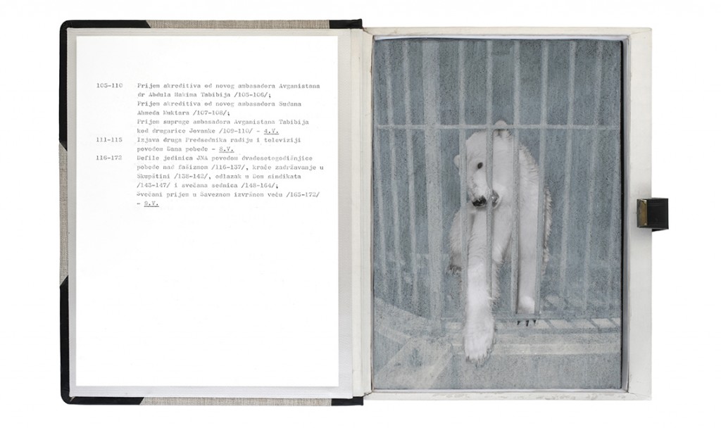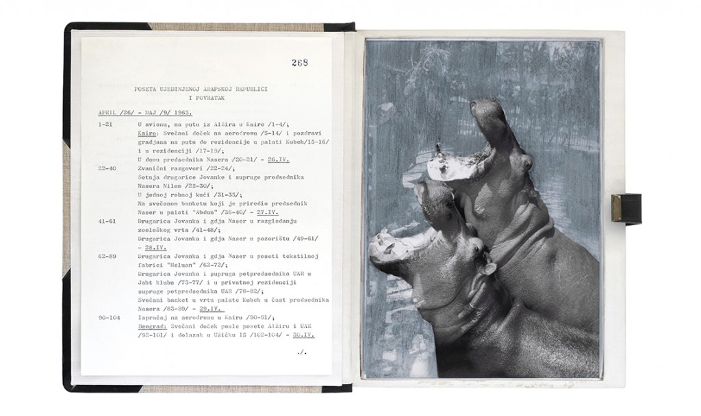 The Gift Ecology presents a series of photographs of Yugoslav government documents detailing the exchange of animals and the ritual functions these gifts performed symbolically in constructing a new transnational political space. Jasmina Cibic erases the geographical context surrounding the events, focusing the viewer’s attention instead on the animals’ portraits and the diplomatic viewership their display once served. As many of the countries—and the multilateral alignments these animals were tasked to represent—begin to fracture or dissolve, the animals’ role as gifts becomes untethered from the obligation of reciprocity. This frees the contemporary viewer to consider their transformed identities, shaped by shifting power structures and silences—perhaps destined to remain forever backstage, within the liberated ruins of colonial and ideological structures.
